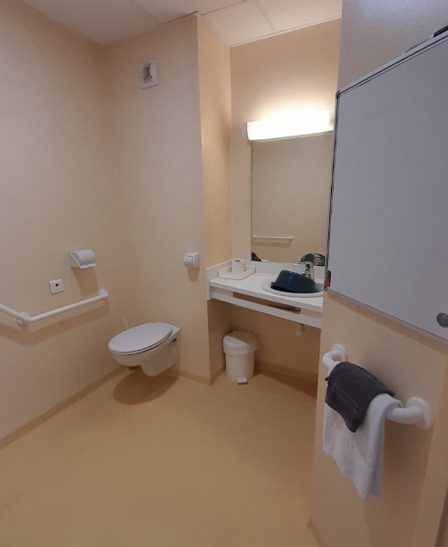 60 résidents sont accueillis dans l’établissement, dont 12 à l’UPAD, dans des chambres de 21m2 équipées de lève-malades plafonniers et disposant d’une terrasse individuelle.